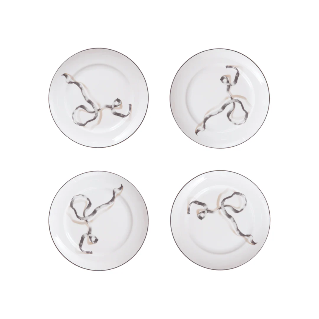 These glass plates turn a simple slice of cake or a few cookies into a high design moment. A delicate glass "ribbon" edge that adds color and a unique handmade texture to the table.